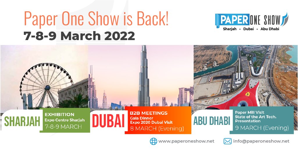 In 2020, due to the pandemic, participants joined the largest paper exhibition in the MENA region online but we will be able to see each other in person this time! As announced, Paper One Show 2022 will be taking place in Sharjah, UAE, between 7-9 March. The organization will be held at Expo Centre Sharjah.